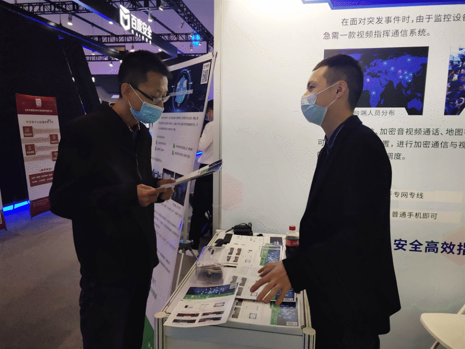 北卡科技携旗下主力产品国内首个获得安全通信资质“大满贯”的专用加密即时通信系统“北卡密信”和通信系统“新成员”:基于公网的视频指挥系统“虎视”参加了本次展会。